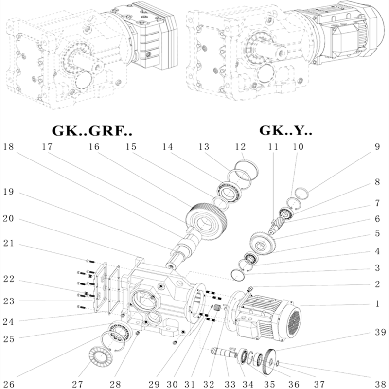 GSF..是B5法蘭安裝斜齒輪-渦輪蝸桿減速機